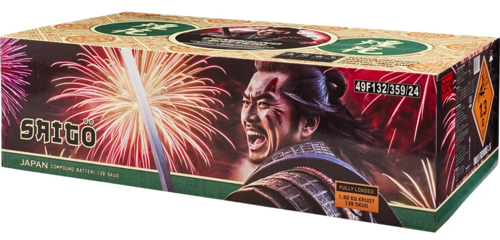 Saigö er et stort batteri med 139 skud, rørdiameter 25/30 mm og en samlet NEM på 1.814,7 g.