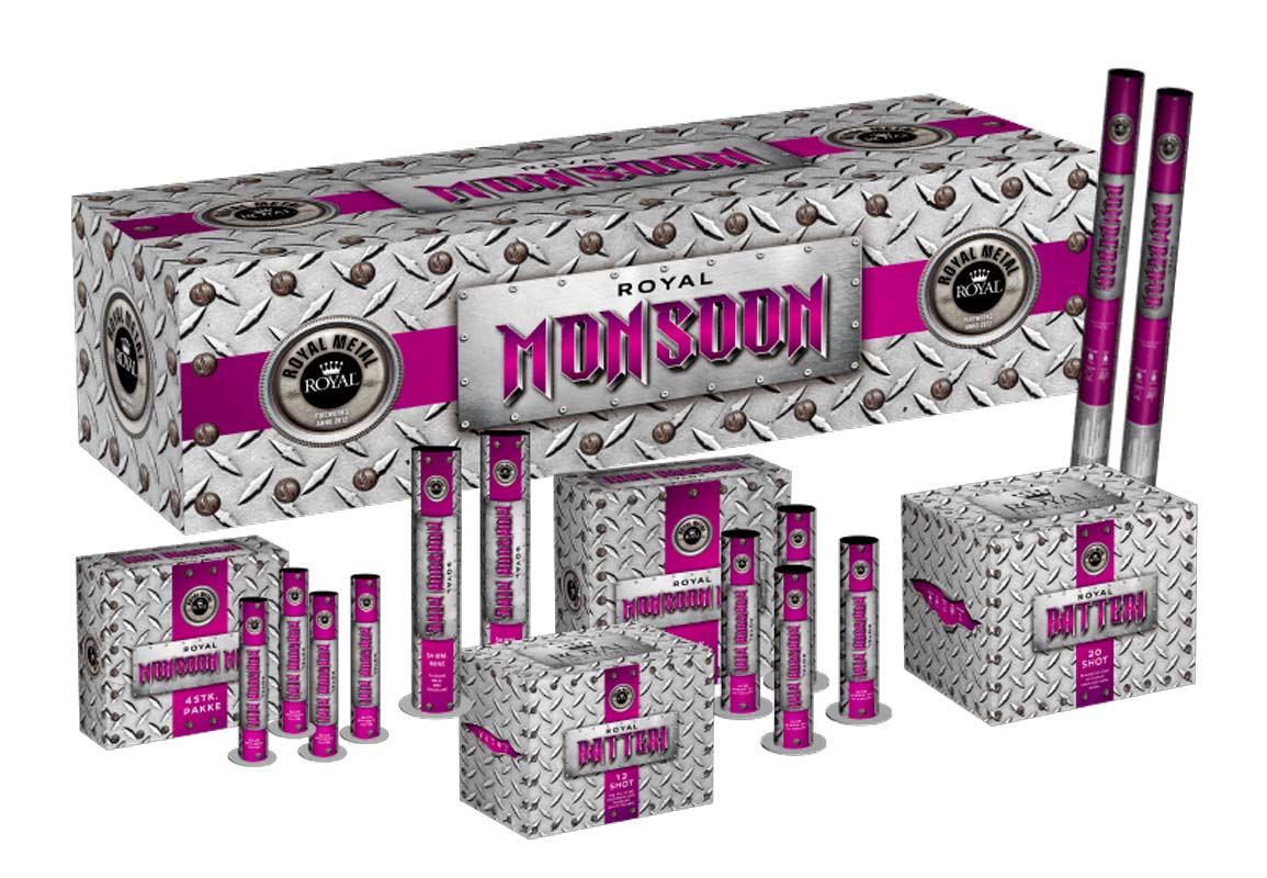 Den ultimative Monsoon sortiment pakke som har alt du har behov for. Pakken kommer med med batterier, bomberør og meget mere. Ialt har denne store pakke 415g krudt som sikre et hav af flotte farver og effekter.